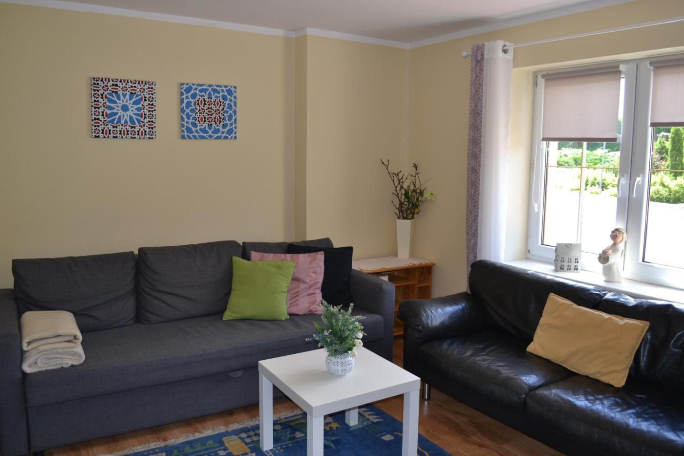 Dom z 3 sypialniami. Boasting a private entrance, this holiday home includes 1 living room, 3 separate bedrooms and 2 bathrooms with a bath and a shower. In the well-fitted kitchen, guests will find a stovetop, a refrigerator, kitchenware and an oven. The holiday home offers a washing machine, soundproof walls, a tea and coffee maker, a flat-screen TV with satellite channels, as well as garden views. The unit has 5 beds. Dom wakacyjny - 15 osobowy. Powierzchnia pokoju ok.: 100 mkw.